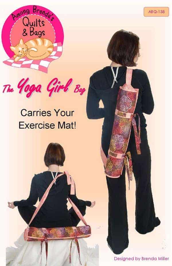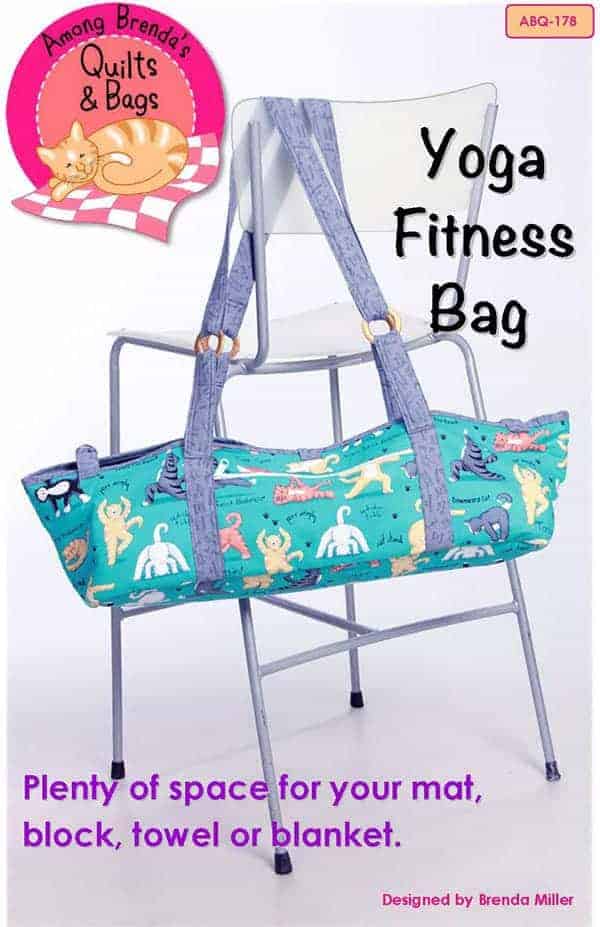 Find a fun yoga themed fabric and create this versatile bag that holds a yoga or pilates mat, towel and block plus a zippered pocket for notes, keys and cash.