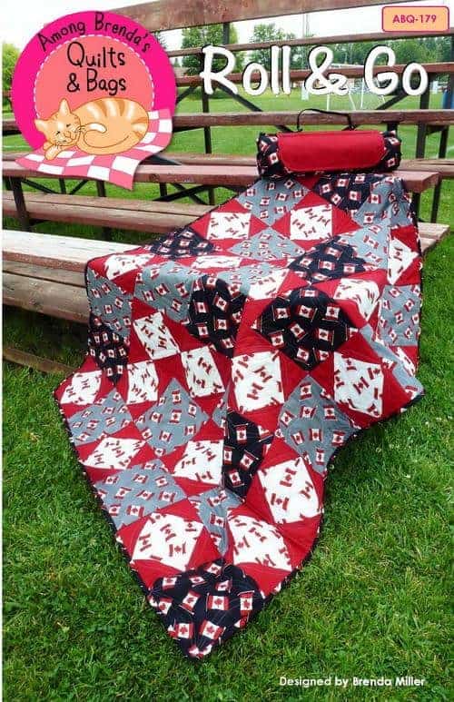 Create this picnic blanket or traveling quilt with holder. Great for hockey or soccer moms for the car, for picnicking, or as a cozy-up quilt for your next outdoor Bar-B-Q.